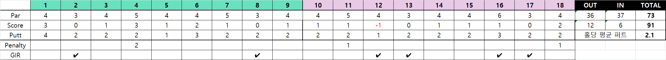 더블보기만 아니였어도 80대 타수도 들어올 수 있었는데 아쉬운 결과였다.