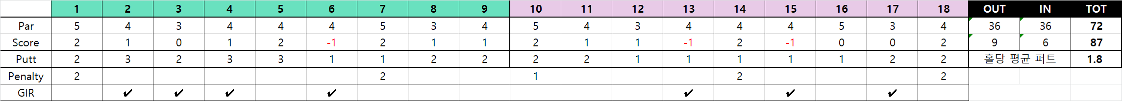 아쉬운 티샷OB들이 있었지만 GIR 수치가 올라가고 있어 고무적이다.