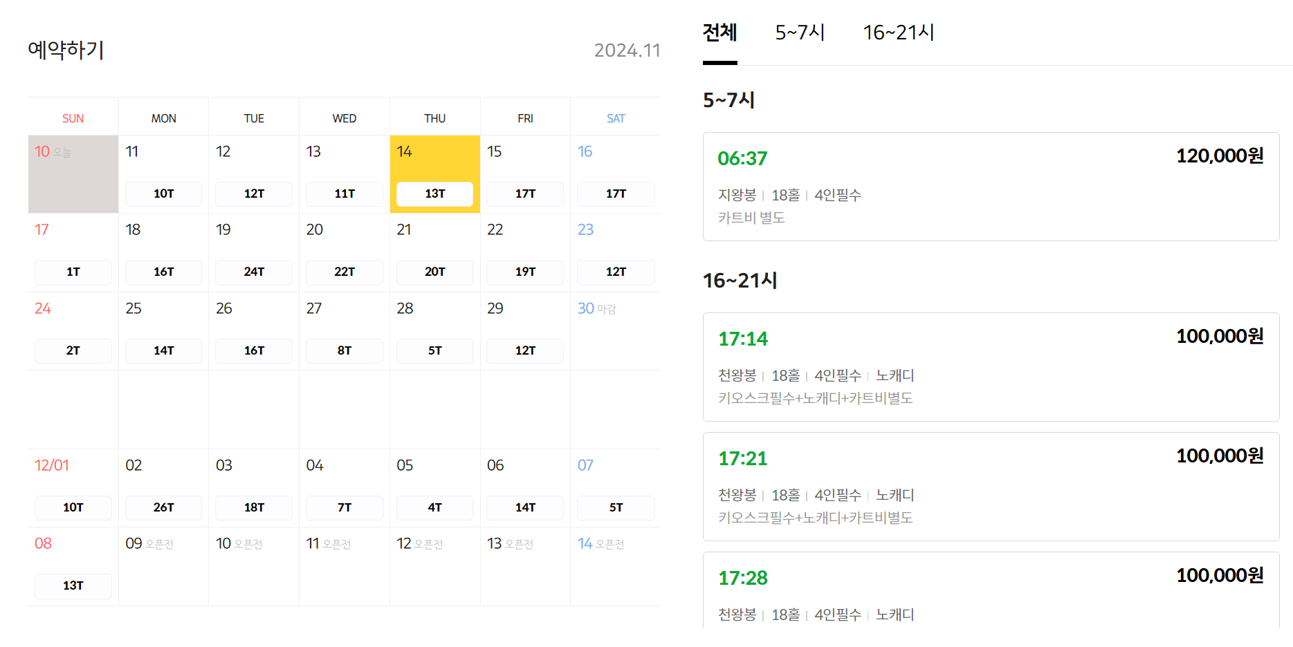 카카오골프예약 어플이나 무등산CC 홈페이지 실시간 예약 사이트에서 예약할 수 있습니다.