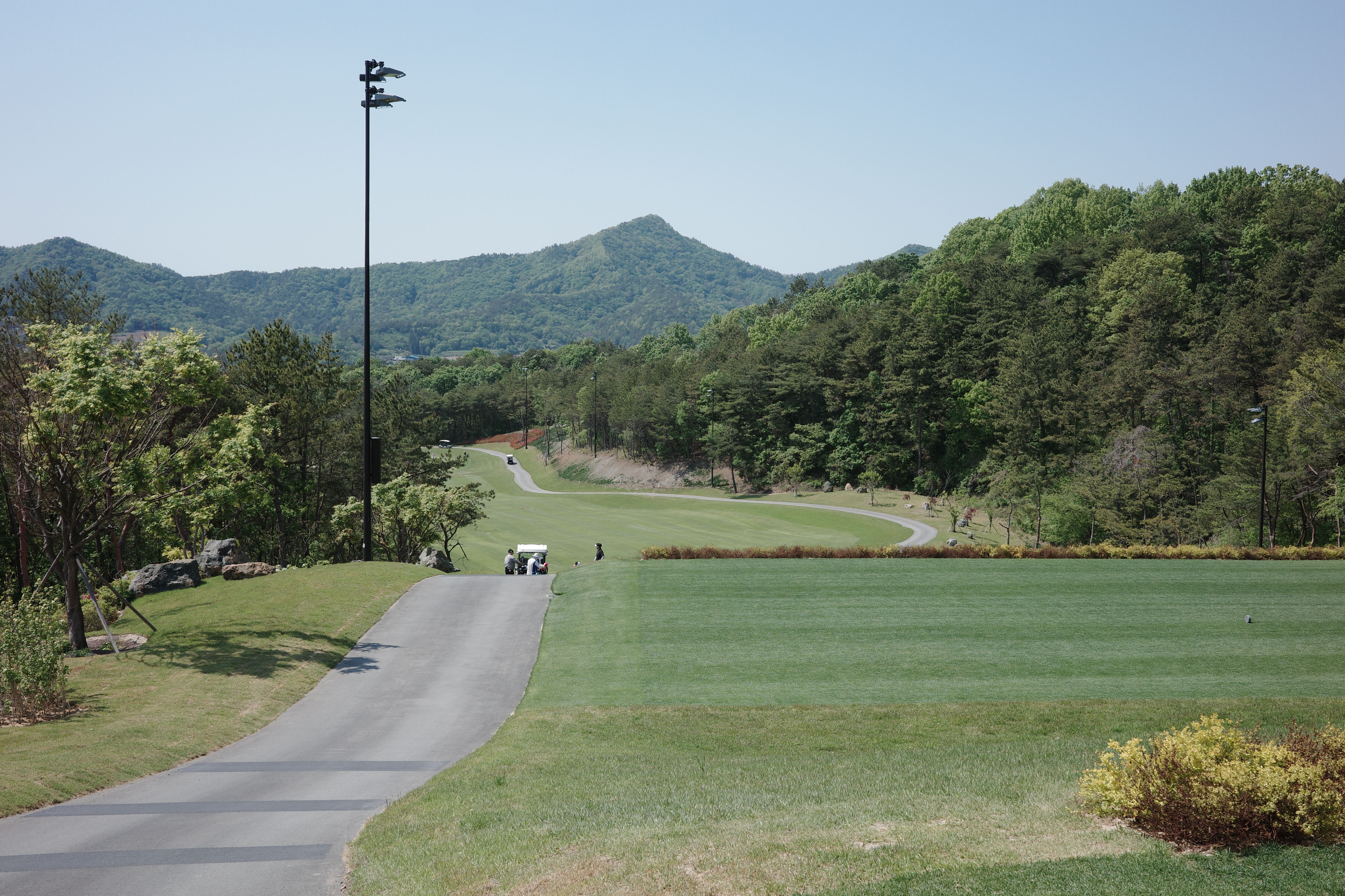 티잉 그라운드는 길게 양잔디가 쫙 깔려있습니다.