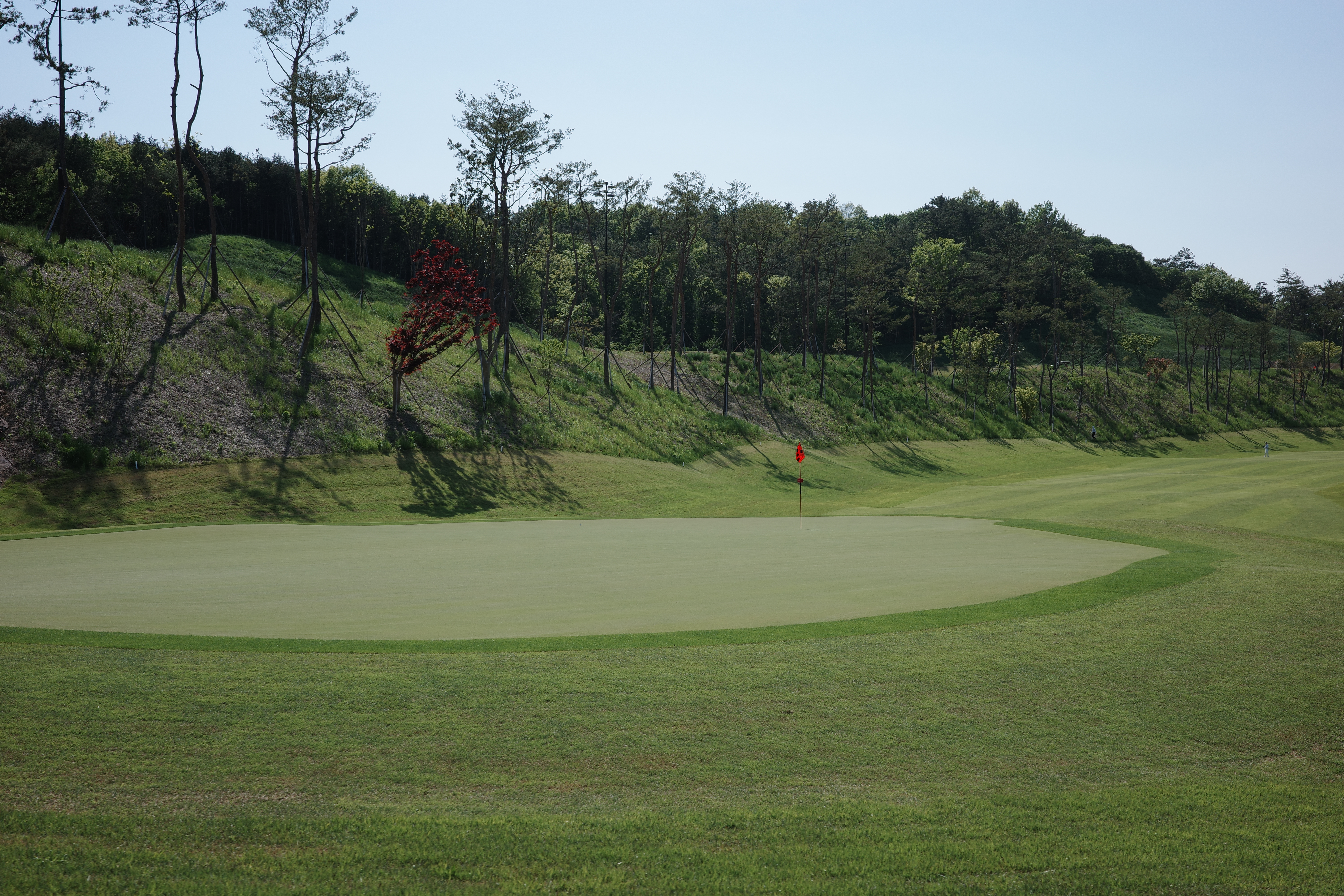 오랫동안 잔디를 심어놓고 깎아서 잔디가 빽빽합니다. 그린도 컨디션 최상
