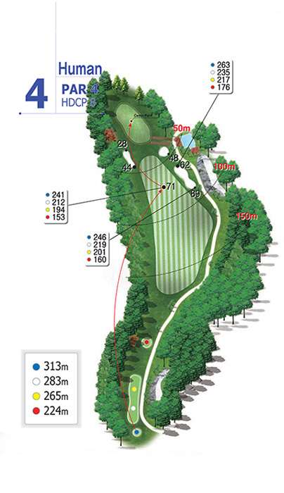 짧은 파4홀 드라이버 티샷 200m만 넘겨도 숏 아이언으로 그린을 공략할 수 있다.